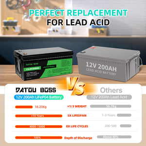 DATOUBOSS 12V 200Ah Lithium LiFePO4 Battery with 200A BMS Deep Cycle Battery for RV Car Solar Home System DIY